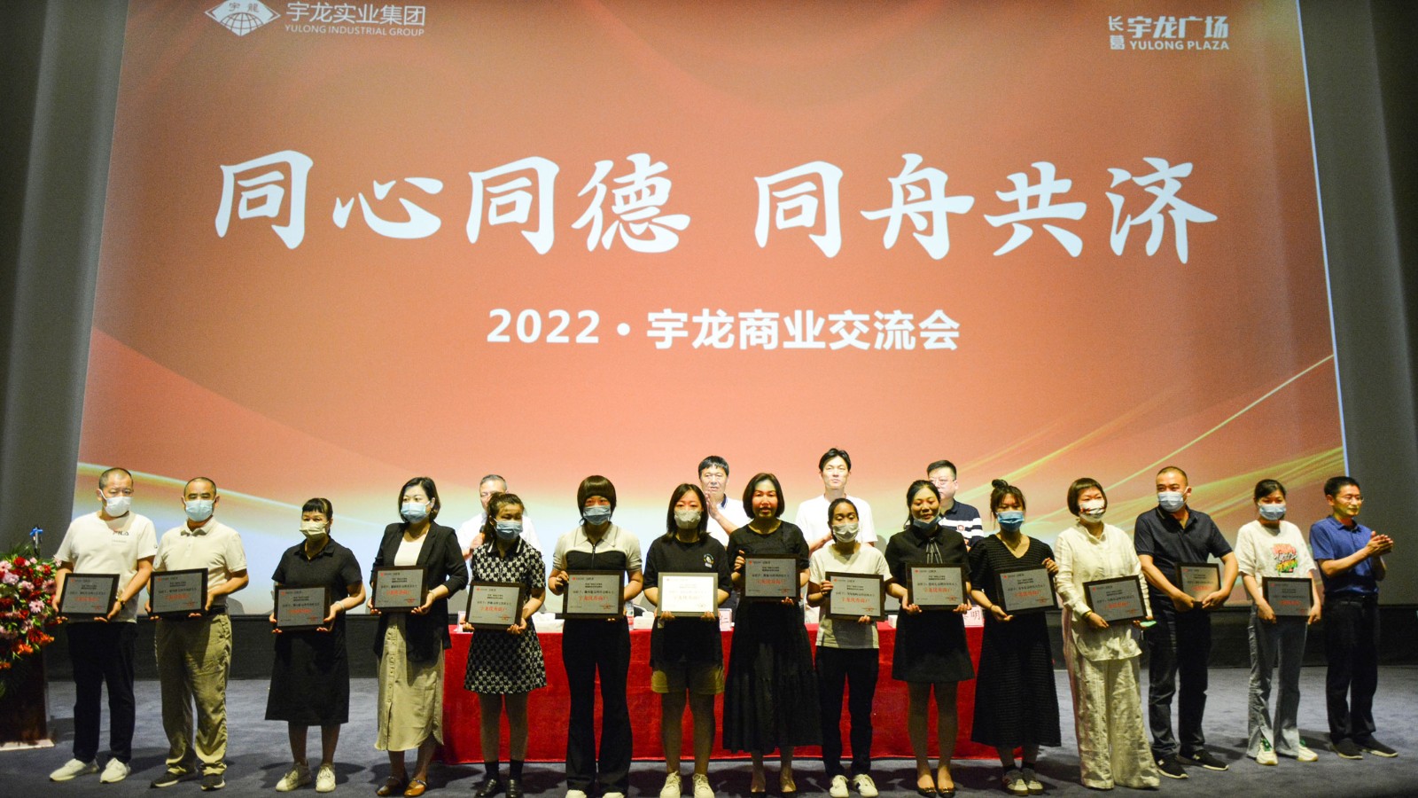 6月24日上午,“同心同德、同舟共濟”2022年宇龍商業交流會在五樓電影院召開,受邀參加交流會的各業態商戶共170多位,出席此次會議的領導有集團公司董事長岳董、集團公司總經理岳總、集團公司副總經理祁總、商貿公司執行董事胡總、商貿公司總經理于總。