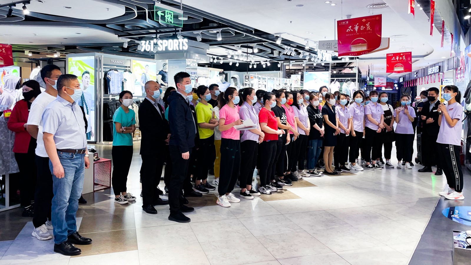 昨天進行了第一場二樓女裝區,4月14日開展了第二場三樓男裝區,早上8:40大家齊聚三樓觀看激烈的比賽,今天進入決賽PK環節的有Jeep、七彩馬、洛茲、法米倫、線索、李寧6個專柜,由來自三樓的43名員工組成評委團。相信今天的參賽選手會更加自信,準備更加充分。