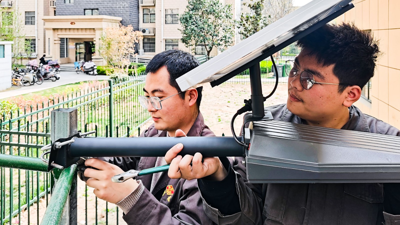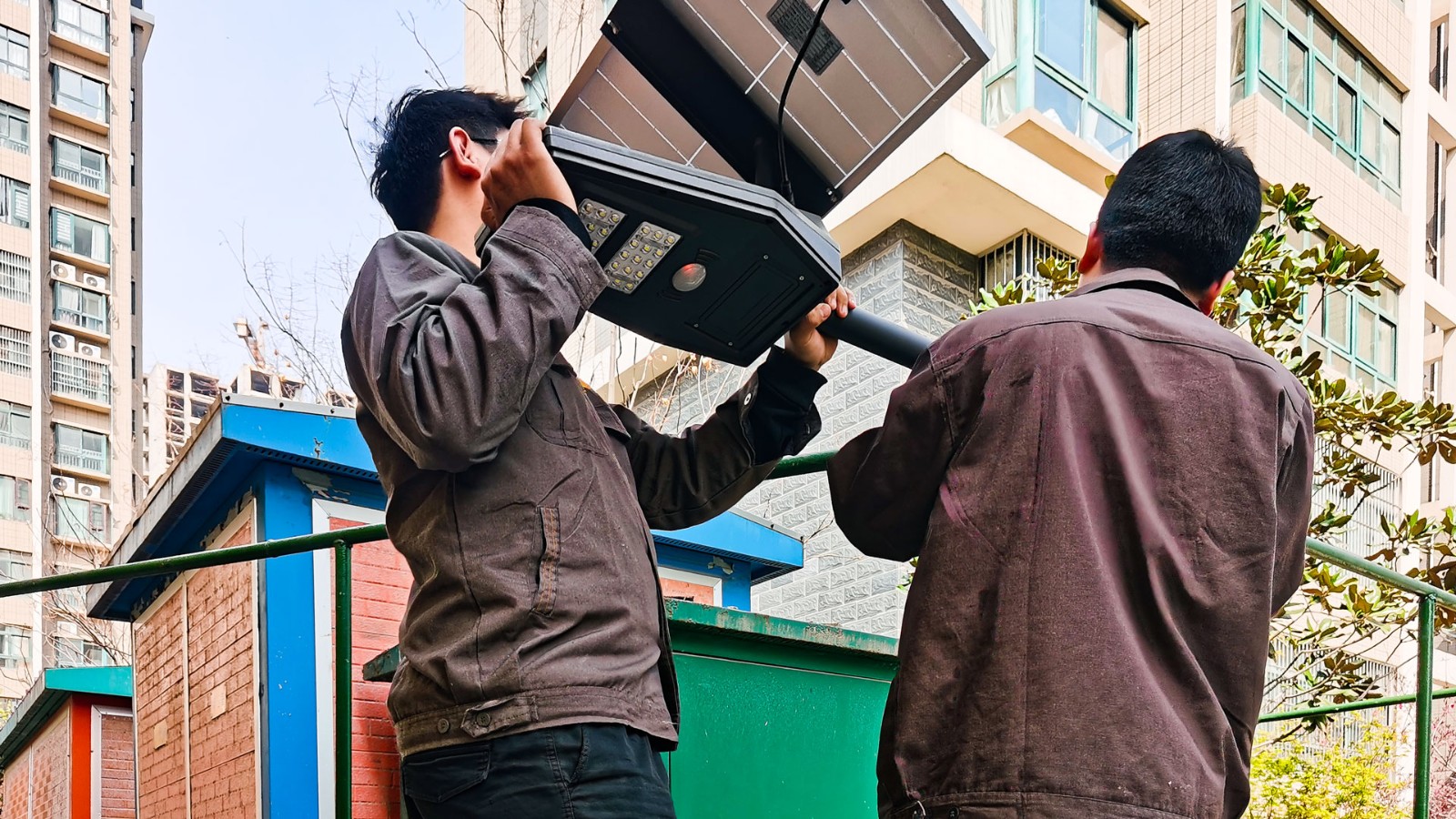3月29日,水電維修中心物業班組的員工為水木清華二期加裝了太陽能路燈。